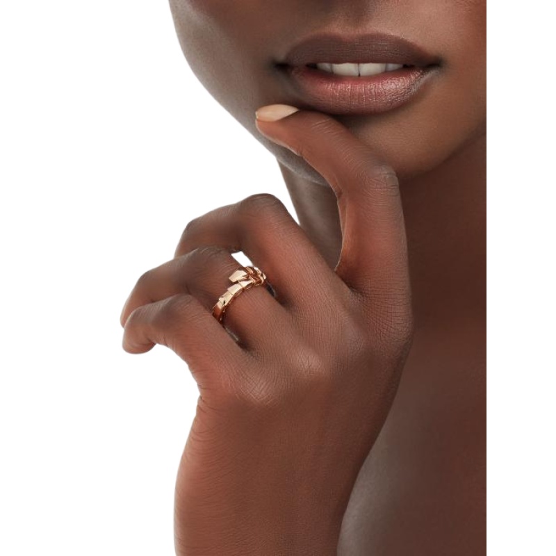 The Serpenti Viper 18K rose gold ring combines pure aesthetics, circumferential shapes and charming charm in an iconic style, which succinctly interprets the endless transformation and evolution of Bvlgari's classic works. This charming jewelry piece embodies the powerful characteristics of the mysterious snake's continuous transformation, inspiring people to actively seek change and regard it as an inexhaustible source of strength and confidence. It is suitable for mixing and matching at will, providing a variety of styling options, showing the flexible and versatile style of the series.