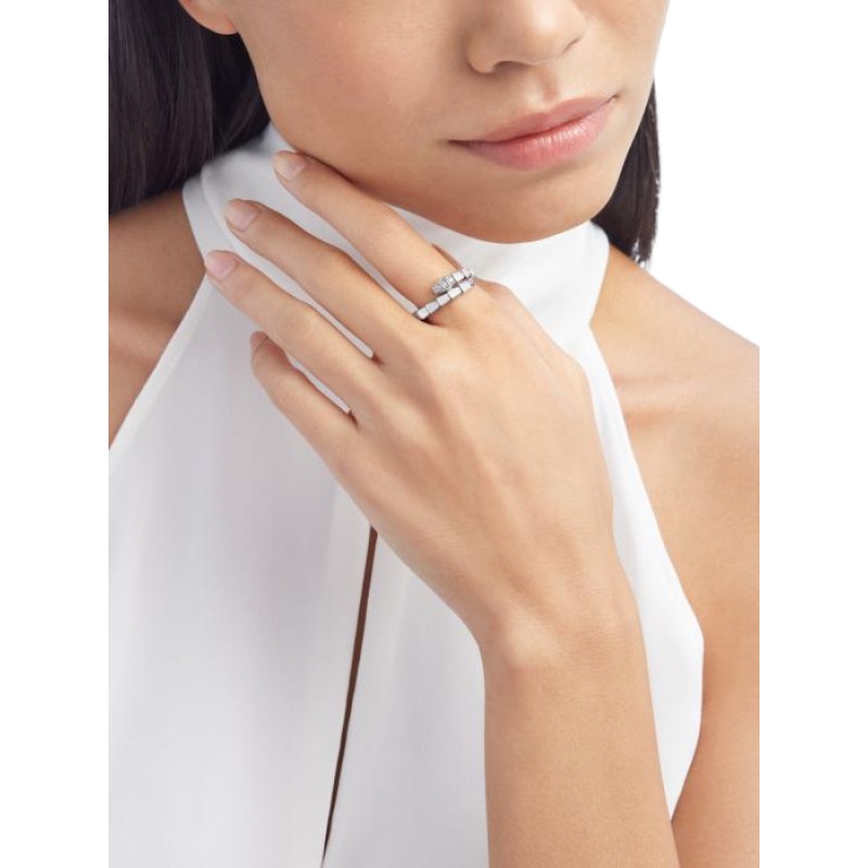 Serpenti Viper ring in 18K white gold and semi-pavé diamonds.