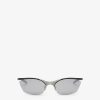 Semi-rimless shield Signature eyeglasses in black satin-finish aluminum. Bridge embellished with crystals. Smoke gray suspended lenses with silver mirror effect. Adjustable nose pads with ruthenium-colored metal details. Made in Italy