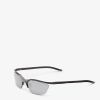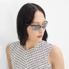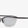 Semi-rimless shield Signature eyeglasses in black satin-finish aluminum. Bridge embellished with crystals. Smoke gray suspended lenses with silver mirror effect. Adjustable nose pads with ruthenium-colored metal details.
