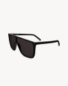 shield sunglasses featuring an acetate frame with Saint Laurent engraved temples and a nylon monolense.