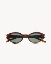 rounded cat-eye sunglasses with tortoiseshell acetate frames and nylon lenses.
