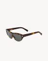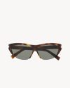 half-rim shield sunglasses with tortoiseshell acetate frames and nylon lenses.