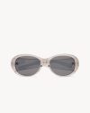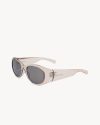 pillowed oval sunglasses with injection frames and nylon mirror lenses, featuring wide temples.