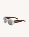 pillowed square sunglasses with transparent acetate frames and nylon mirror lenses, featuring wide tortoiseshell temples.