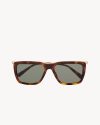 tortoiseshell sunglasses with squared acetate frames and nylon lenses, featuring a metal top bar and temples.