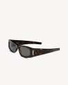 rectangular tortoiseshell sunglasses with thick acetate frames and nylon lenses, featuring wide temples.