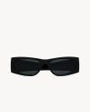 rectangular sunglasses with thick acetate frames and nylon lenses, featuring wide temples.