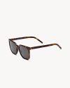 tortoiseshell sunglasses with square acetate frames and nylon lenses.