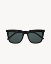 sunglasses with square acetate frames and nylon lenses.