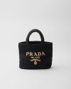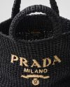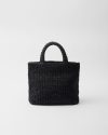 This tote bag with a soft, deconstructed design is made of raffia-effect yarn, a light material with a summery mood. The embroidered lettering logo decorates the front, while the emblematic triangle in enameled metal embellishes the side.