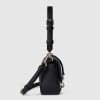 In the Spring Summer 2025 collection, crossbody bags in the House’s distinctive aesthetic feature a flap closure and the snap hook hardware, a new signature design of the House. This black grainy design features a Web detail alongside the signature snap hook closure.