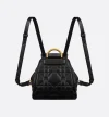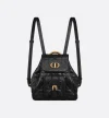 • The Dior Caro backpack embodies modern and elegant style. Crafted in black lambskin elevated by Macrocannage topstitching, the design features a flap adorned with an antique gold-finish metal CD signature that opens to reveal a drawstring main compartment, while a small flap pocket can hold all the essentials. The small backpack has a gold-finish handle and adjustable straps for added comfort.