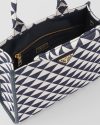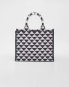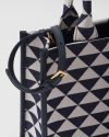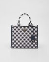 Introduced for the first time on trunks designed by Mario Prada, the Prada triangle expresses uniqueness and modernity through its universal, minimalist shape that is reinvented in a different way each season. Here, the geometric design is transformed into a sophisticated yet modernist pattern that plays with contrasting colors and decorates this sleek tote bag. Details in the brand's iconic Saffiano leather embellish the design completed by a detachable shoulder strap that allows it to be worn in different ways.