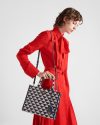 Introduced for the first time on trunks designed by Mario Prada, the Prada triangle expresses uniqueness and modernity through its universal, minimalist shape that is reinvented in a different way each season. Here, the geometric design is transformed into a sophisticated yet modernist pattern that plays with contrasting colors and decorates this sleek tote bag. Details in the brand’s iconic Saffiano leather embellish the design completed by a detachable shoulder strap that allows it to be worn in different ways.