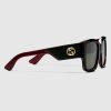The Pre-Fall 2024 eyewear collection successfully combines the coveted silhouettes of bygone decades with a contemporary logo feel. Here, a shiny dark tortoiseshell acetate frame pairs with an Interlocking G motif.