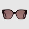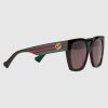 Crafted from dark brown acetate, these sunglasses are characterized by a square-frame. A green and red stripe detail features on the temples, while the signature Interlocking G appears in gold as a subtle detail.