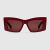 • Shiny solid Gucci Rosso Ancora red acetate temples with Interlock G detail