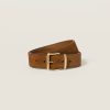 Ideal for simple or sophisticated styling, this suede belt is characterized by a minimalist design and the Miu Miu logo engraved on the buckle.