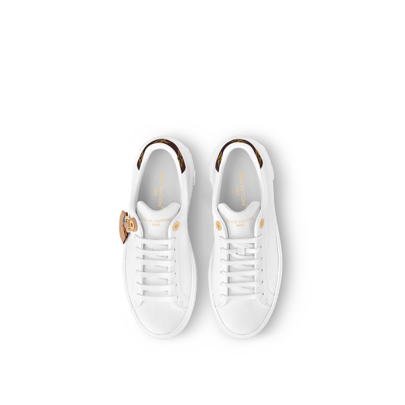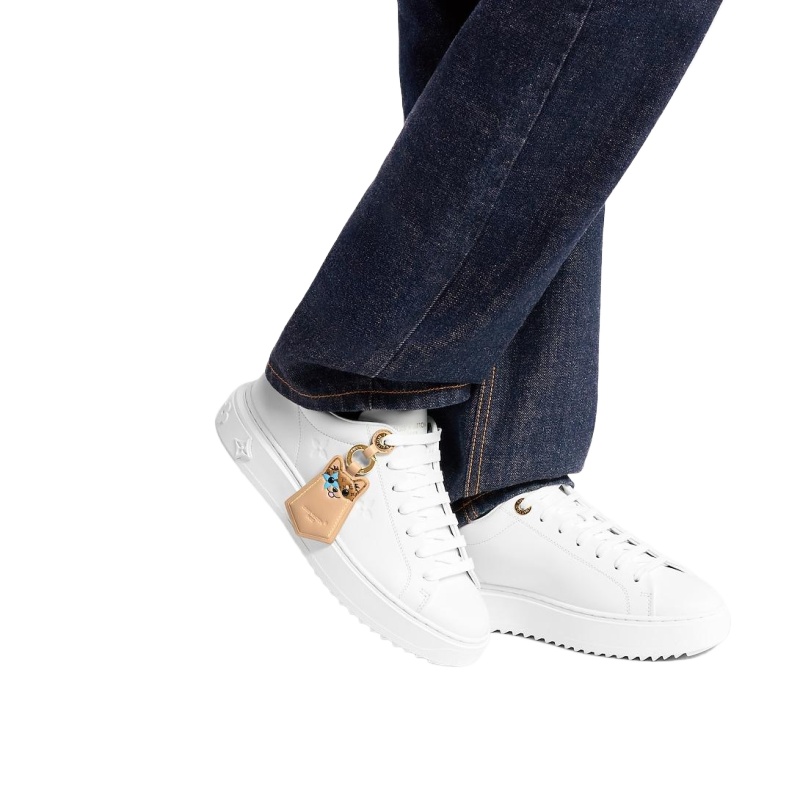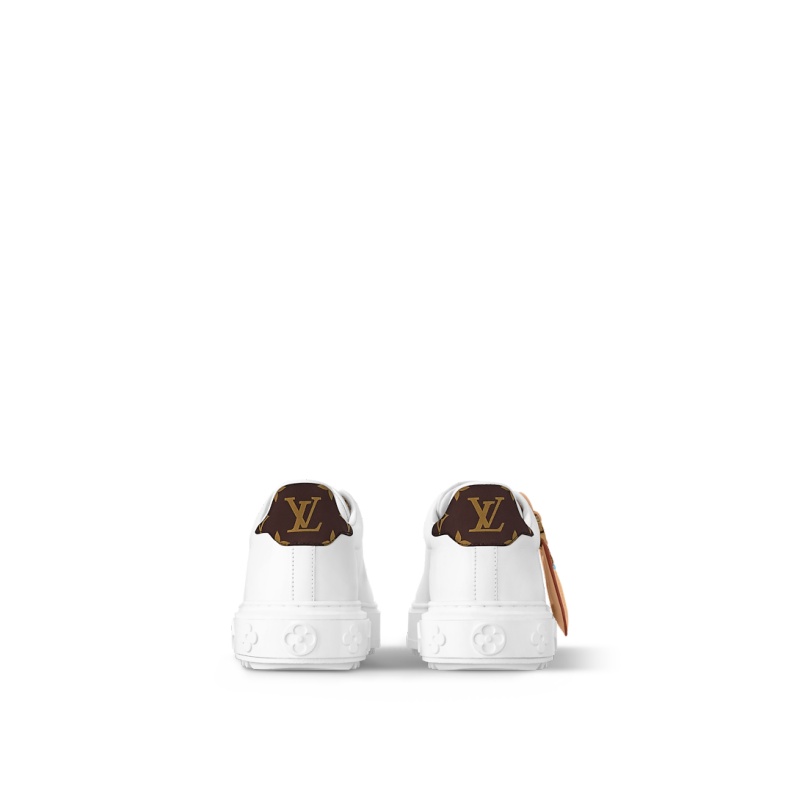 This edition of the emblematic Time Out sneaker is made of soft calf leather, which is partially debossed with the Monogram pattern. It is complemented by novel details, notably a key bell in natural leather with a playful animal face. Monogram-canvas trim at the back and engraved, gold-toned eyelets further enhance this design.