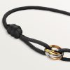 Product Description: Trinity bracelet 18K white gold (750/1000) 18K rose gold (750/1000) 18K yellow gold (750/1000) Supplied on a cord Width: 2 mm Inner diameter: 10.7 mm (for size 17)