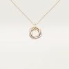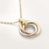 Product Description: Trinity necklace Medium model 18K white gold (750/1000) 18K rose gold (750/1000) 18K yellow gold (750/1000) 18K yellow gold (750/1000) chain Inner diameter: 15.3 mm Adjustable chain length: 38-42 cm