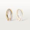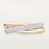 Product Description: Trinity ring Small model 18K white gold (750/1000) 18K rose gold (750/1000) 18K yellow gold (750/1000) Set with 104 brilliant-cut diamonds totaling 0.46 carats Width of one ring: 2.5 mm (for size 52)
