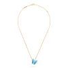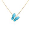 Two Butterfly pendant, 18K yellow gold, turquoise, round diamond, rhodium plated 18K white gold, marquise-cut diamond; diamond quality DEF, IF to VVS.The pendant is attached to the necklace’s chain STONE Diamond: 2 stones, 0.2 carat Turquoise: 4 stones