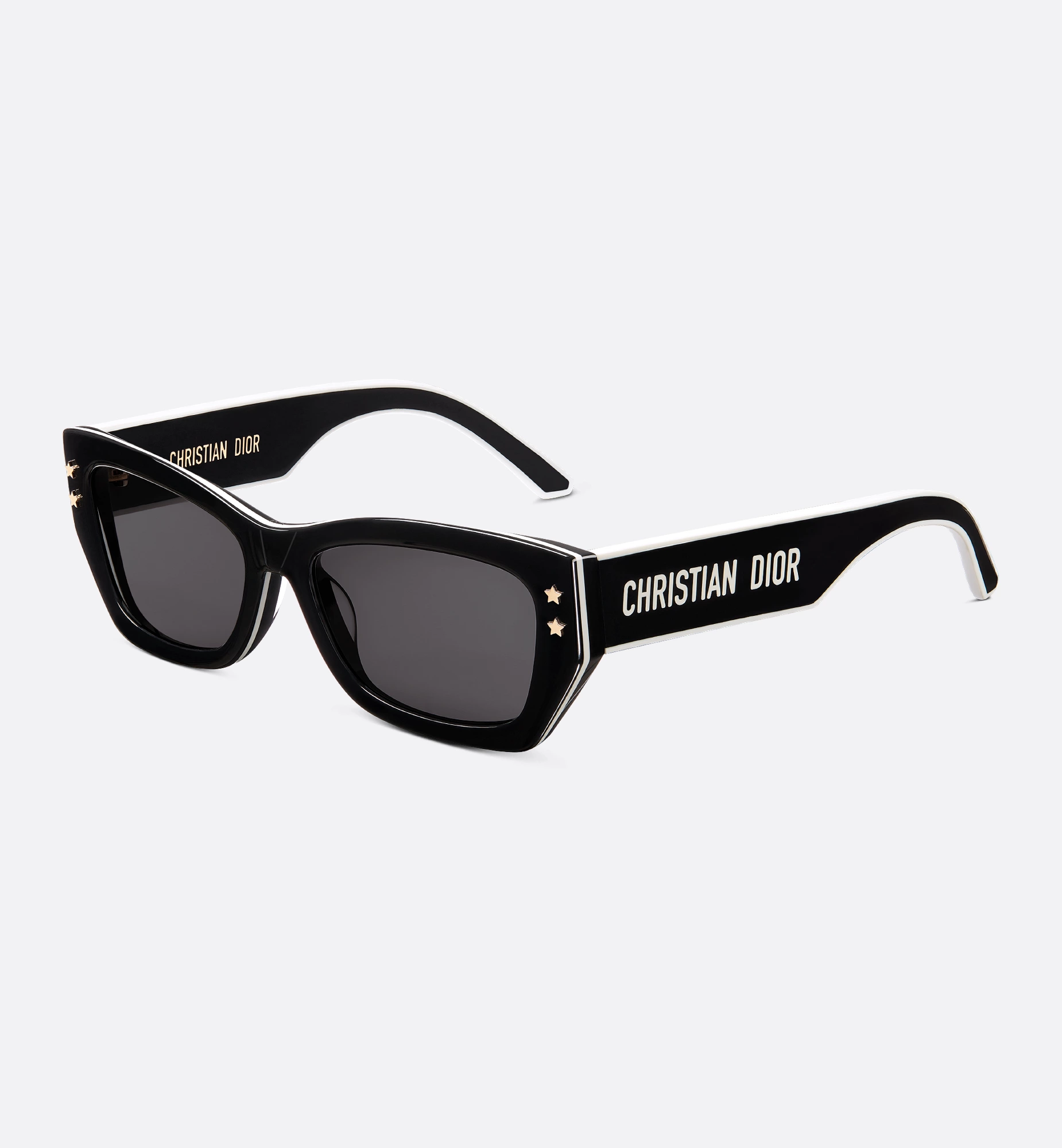 Gold-finish metal CD signature on the temples