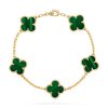 Vintage Alhambra bracelet, 5 motifs, 18K yellow gold, malachite.