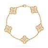 Vintage Alhambra bracelet, 5 motifs, 18K yellow gold, round diamonds; diamond quality DEF, IF to VVS.