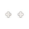 Vintage Alhambra earrings, rhodium plated 18K white gold, white mother-of-pearl.