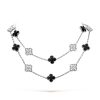 Vintage Alhambra long necklace, 20 motifs, rhodium plated 18K white gold, onyx, round diamonds; diamond quality DEF, IF to VVS.