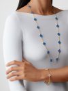 Vintage Alhambra long necklace, 20 motifs, 18K yellow gold, blue agate.
