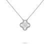 Vintage Alhambra pendant, rhodium plated 18K white gold, round diamonds; diamond quality DEF, IF to VVS.The pendant is attached to the necklace’s chain