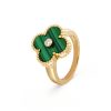 Vintage Alhambra ring, 18K yellow gold, malachite, round diamond; diamond quality DEF, IF to VVS.