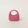 The Wander bag is reinterpreted season after season, becoming an iconic accessory of Miu Miu collections. Made of matelassé nappa leather, the bag is characterized by the sophisticated, three-dimensional effect created by the refined workmanship. The hobo shape, blending retro inspirations and contemporary elegance, becomes a new synonym of modern femininity.
