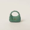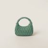 The Wander bag is reinterpreted season after season, becoming an iconic accessory of Miu Miu collections. Made of matelassé nappa leather, the bag is characterized by the sophisticated, three-dimensional effect created by the refined workmanship. The hobo shape, blending retro inspirations and contemporary elegance, becomes a new synonym of modern femininity.