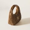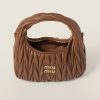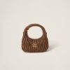 The Wander bag is reinterpreted season after season, becoming an iconic accessory of Miu Miu collections. Made of matelassé nappa leather, the bag is characterized by the sophisticated, three-dimensional effect created by the refined workmanship. The hobo shape, blending retro inspirations and contemporary elegance, becomes a new synonym of modern femininity.