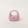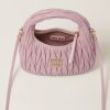 The Wander bag is reinterpreted season after season, becoming an iconic accessory of Miu Miu collections. Made of matelassé nappa leather, the bag is characterized by the sophisticated, three-dimensional effect created by the refined workmanship. The hobo shape, blending retro inspirations and contemporary elegance, becomes a new synonym of modern femininity.