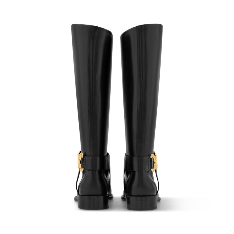 Crafted from fine calf leather, the Westside flat high boot draws inspiration from classic riding boots. Its sleek lines are complemented by an oversized snap-hook accessory, which is engraved with the Louis Vuitton signature. This model features a discreet side zip for easy fitting and is finished with a leather and rubber outsole.