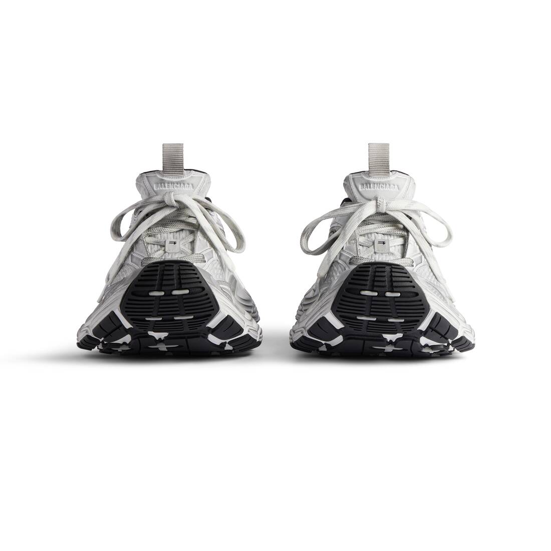 • Leather free • Sneaker • Exaggerated volume, less exaggerated as on the Fall 24 Show • Worn-out effect • Mesh, TPU and rubber • Balenciaga logo debossed on the tongue • 3B sports icon artwork in rubber on each side • Sporty B logo on the upper • Shoe size embroidered at back • Back and tongue pull-on tab • Made in China