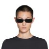 Temple length: 5,1 inch • Bridge length: 0,7 inch • Eastman Acetate Renew (40% bio-based, 27% recycled) • Rectangle shape • Standard fit • Hidden hinges within the shiny silver BB logo with rhinestones • Lasered logo on the right lens • Lens material: CR 39 • Lens category: 3 • 100% UVA/UVB protection • Suitable for optical conversion • Made in Italy • BB0096S