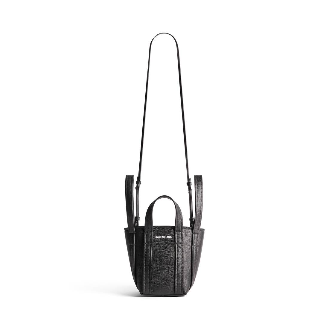 • Dimensions: L5,1 x H6,3 x W4,9 inch • Grained calfskin • Shoulder tote bag • Two top handles • Two handles on sides • Adjustable and removable strap (drop: 18,9 inch) • Balenciaga logo printed at front • Semi-shiny palladium hardware • Snapped closure • 1 inner zipped pocket • Made in Italy