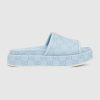 Emblematic codes of the House and refined patterns are reinterpreted in contemporary ways for the latest Gucci collection. This wedge sandal is crafted in GG canvas and is defined by the signature silhouette.