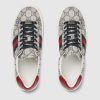 Since its debut, the Ace sneaker has become a mainstay of the House’s narrative. A new version of the characteristic low-top silhouette is presented in the latest collection, featuring unique details. A beige and blue GG Supreme canvas defines the shape, while a metal “ACE” tag shines on the lace-up closure. Gucci’s distinctive Web stripe completes the style.