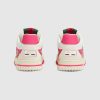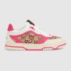 Enriching a selection of women’s shoes for the Cruise 2025 collection, the snake motif appears as a print or embroidered detail alongside the House logo. The Re-Web sees Gucci’s heritage stripes as a bold statement detail on a contemporary silhouette. This pair is crafted from the signature Original GG canvas,leather and suede. Defined by multiple details, this new sneaker takes center stage with the unique details such as the snake embroidery.