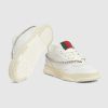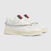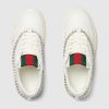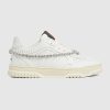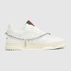 The Re-Web sees Gucci’s heritage stripes as a bold statement detail on a contemporary silhouette. This pair is crafted from white leather and enriched by a crystal chain detail with a Gucci charm. Defined by multiple iconic details, this new sneaker takes center stage.