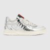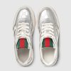 The Re-Web sees Gucci’s heritage stripes as a bold statement detail on a contemporary silhouette. This pair is crafted from silver metallic leather and presents a metallic GG leather insert. Defined by multiple signature details, this new sneaker takes center stage with the bold green and red Web tongue.