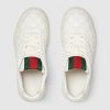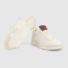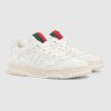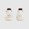 The Re-Web sees Gucci’s heritage stripes as a bold statement detail on a contemporary silhouette. Defined by signature details, this pair of sneakers is crafted from beige and white GG Supreme canvas and completed with green and red Web tongue.